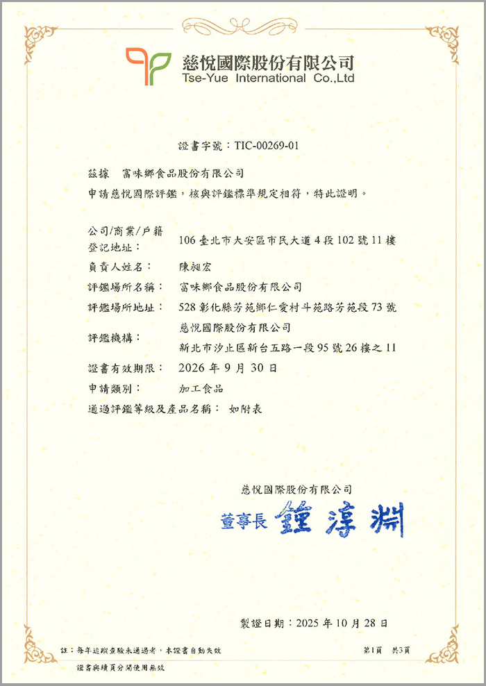 符合國際市場規範,如:英國零售商協會BRC、伊斯蘭Halal、猶太Kosher等;