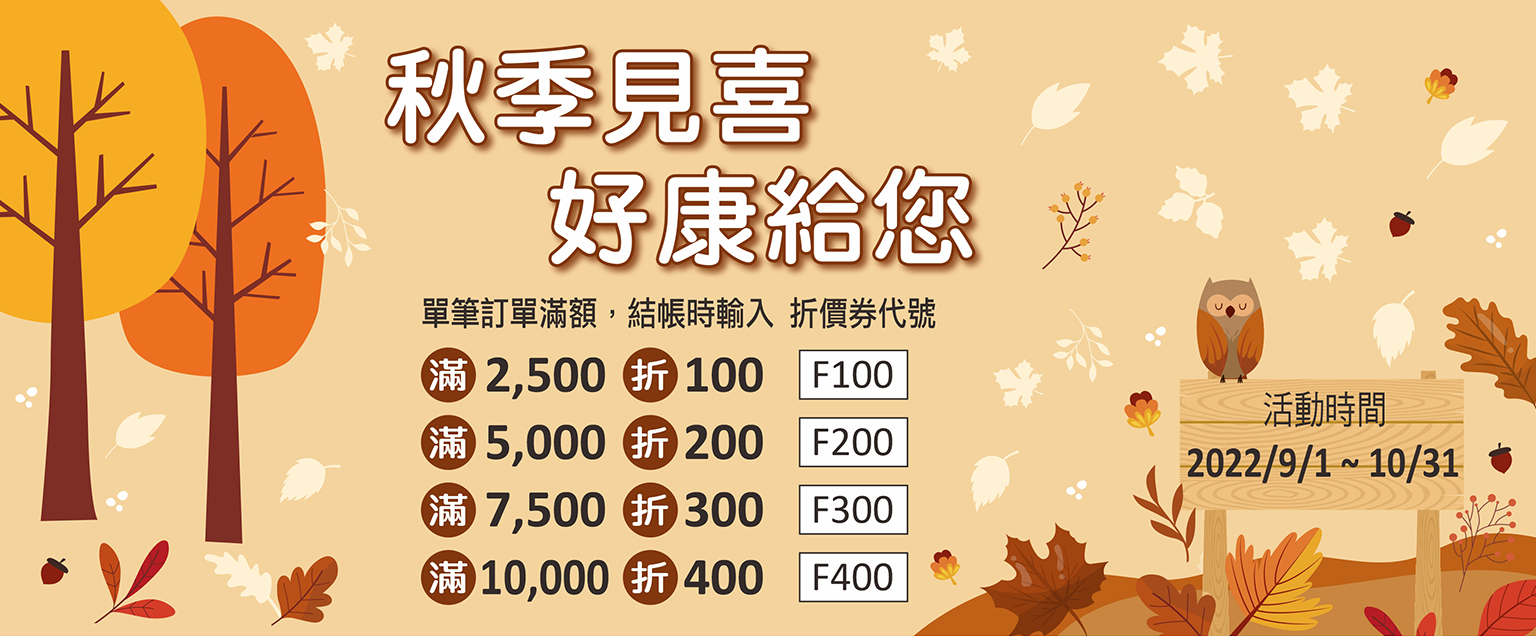 滿 $ 2,500元,結帳時輸入通關密語 "F100",即可折抵100元;