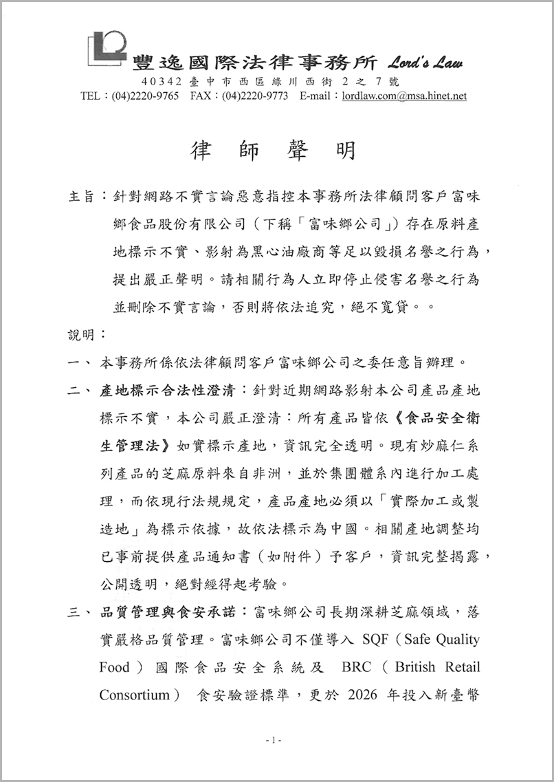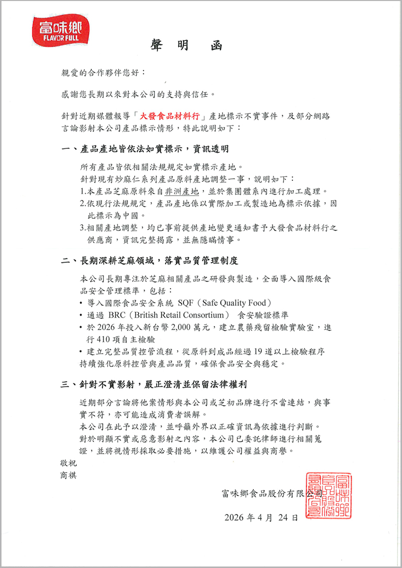 富味鄉食品(股)公司成立於1983年,乃轉型自創辦人陳百川夫婦在1965年創建的「建發製油廠」,半世紀的深耕與成長,從家庭作坊到現在具備多項國際食品安全品質管理系統證書,富味鄉人自嘲終日與芝麻小事為伍,秉持深耕的執著,一步一腳印的精神,將講究傳統風味的芝麻產品,轉變成現代化生產工藝與管理,深入芝麻生物科技的領域,將優良的產品分享國人,以FOREWAY品牌行銷至海外35多個國家與地區,讓世界看見台灣這位芝麻專家,每一個里程碑皆代表著公司成長的軌跡